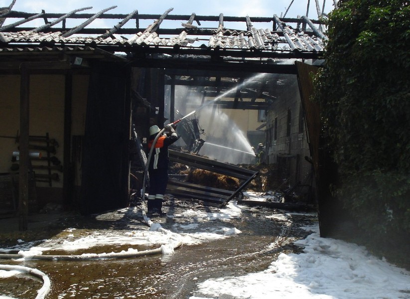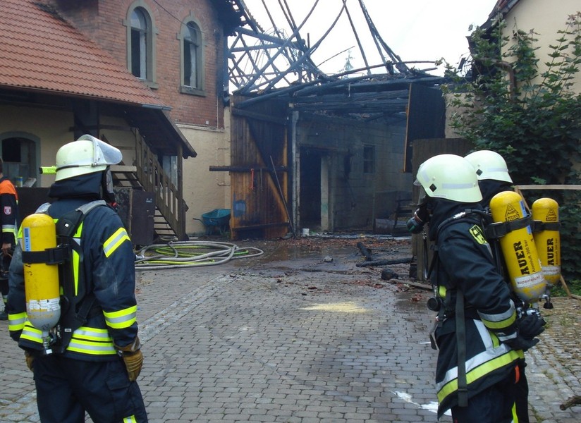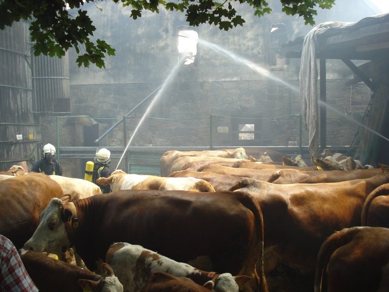 In einer im Oberwerrner Altdorf gelegenen Scheune brach am späten Dienstagvormittag ein Feuer aus. Durch das schnelle Eingreifen von über 130 Einsatzkräften konnte verhindert werden das dass Feuer sich auf ein zum Anwesen gehörendes Wohnhaus oder benachbarte Gebäude in diesem eng bebauten Teil der Ortschaft ausbreitet. Scheune und die Werkstatt des Hofes brannten jedoch völlig aus. Feuerwehrleute und freiwillige Helfer konnten 65 Kühe gerade noch rechtzeitig in Sicherheit bringen. Bis in den frühen Mittwochmorgen waren Feuerwehr und THW im Einsatz um Teile der einsturzgefährdeten Scheune abzutragen und Nachlöscharbeiten durchzuführen.