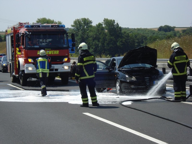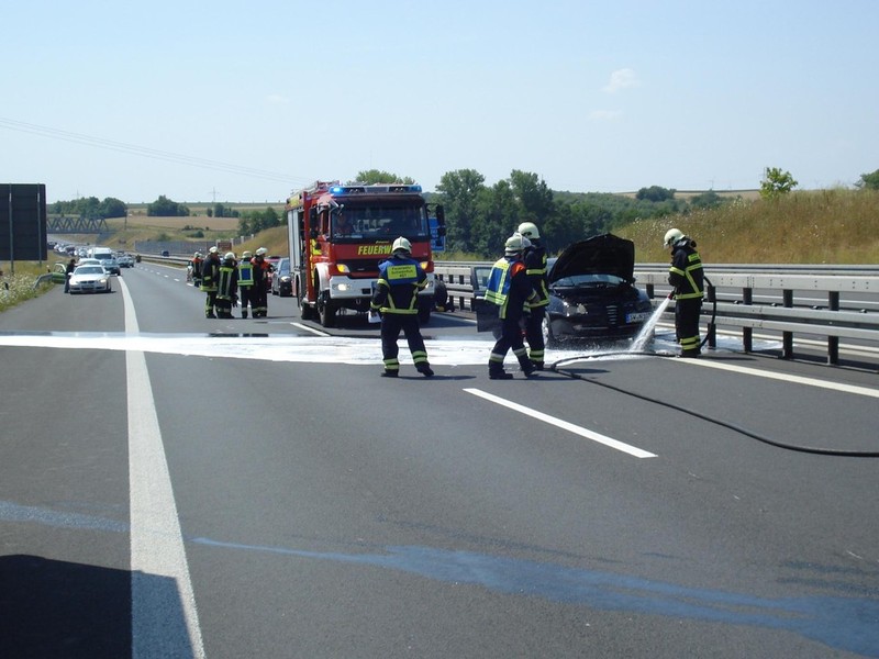 Auf der A 71 Fahrtrichtung Erfurt fing am 27.07.2013 um12:34 Uhr ein PKW nach einem Motorschaden Feuer und musste gelöscht werden.