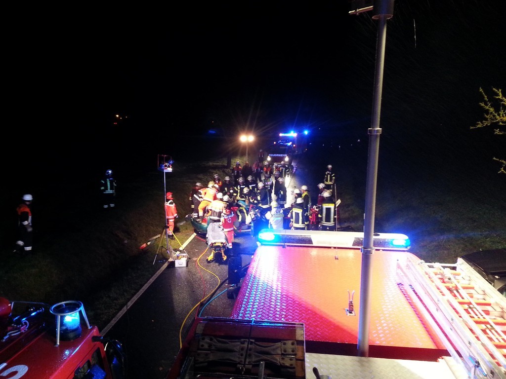 Bei einem Verkehrsunfall am 06.11.2013 auf der Staatsstraße 2290 zwischen Obbach und Euerbach sind am Mittwochabend kurz nach 18:00 Uhr drei Personen zum Teil schwer verletzt worden.
