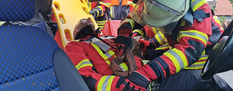 In realistischen Übungsszenarien trainieren die Einsatzkräfte das strukturierte Vorgehen bei Verkehrsunfällen – von der Erkundung über die Sicherung der Einsatzstelle bis