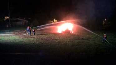 Nachdem jeder gestärkt war, folgte die Alarmierung zu einer brennenden Gartenhütte. Bei Eintreffen stand diese im Vollbrand und mehrere Gasflaschen explodierten.