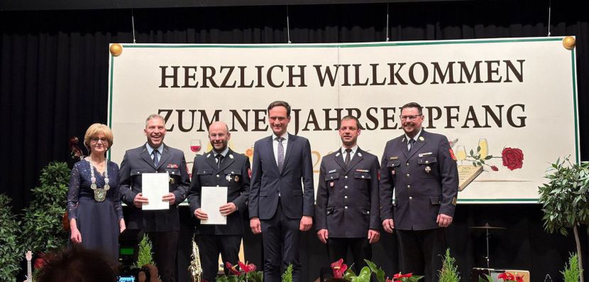 Im Rahmen des diesjährigen Neujahrsempfangs wurden zwei unserer Kameraden für 25 Jahre aktiven Feuerwehrdienst sowie ihr außergewöhnliches Engagement für die Freiwillige Feuerwehr ausgezeichnet.