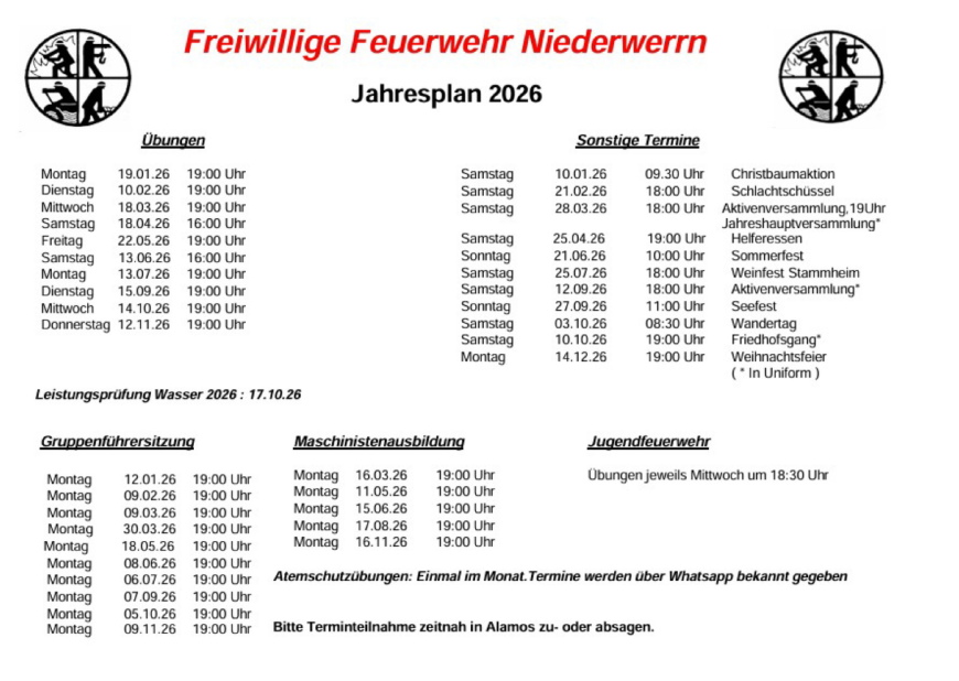 | Allgemeine Übung | 10.02,2025 | Di.19:00 Uhr |