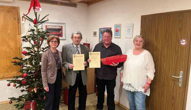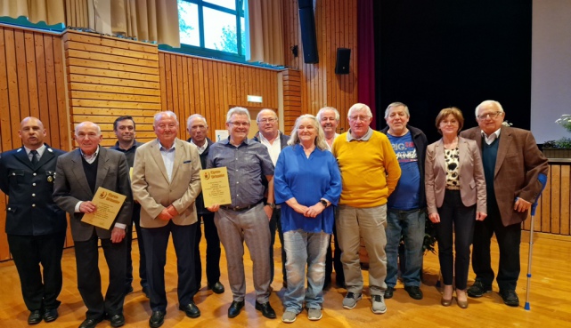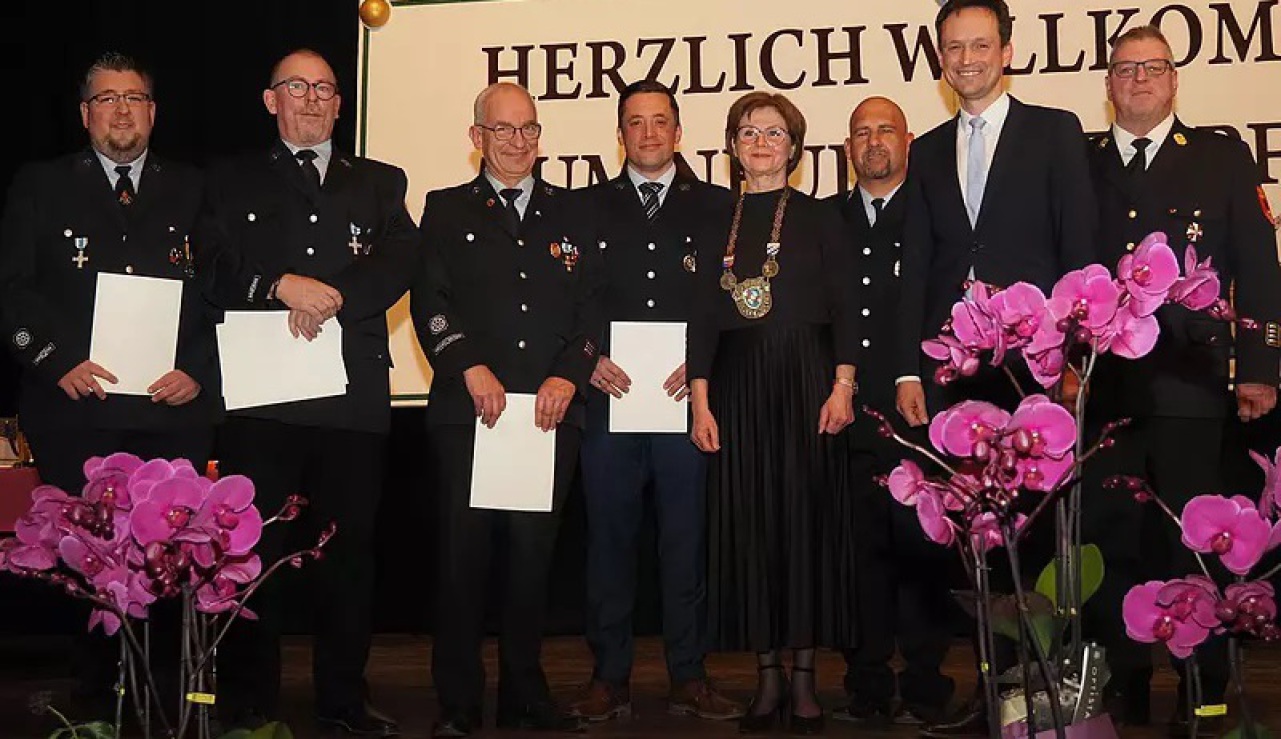 Besonders aktive Kameraden, die auf 25 oder 40 Jahre Dienst zurückblicken können, erhalten im Rahmen des Neujahrsempfangs der Gemeinde das Feuerwehr-Ehrenabzeichen in Silber bzw. Gold